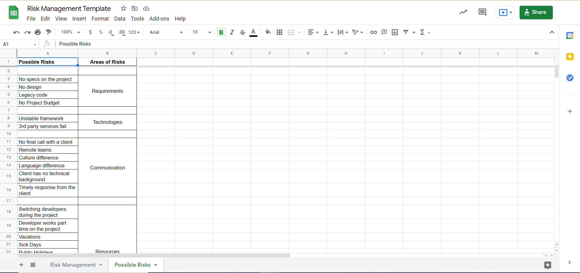 Juggling tasks for clients can be quite overwhelming, so let us deal with the stress of risk management for you. We've created a straightforward risk management template (Google Sheet) to cater to your needs to expand your business.